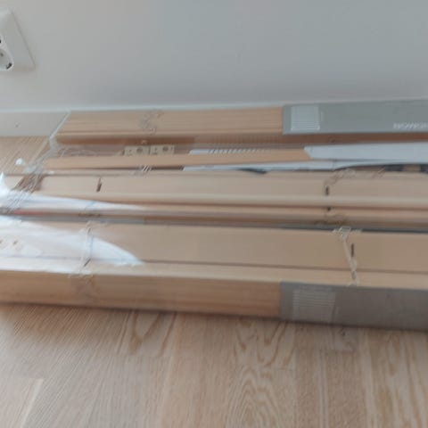 To uåpnede plissegardiner selges. Pris under hvert bilde.
