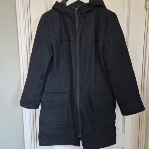 Flott foret vinterjakke fra Riccovero i str 38. Mange praktiske lommer, snøring i livet og avtagbar hette. Mørk blå. Kan sendes med PostNord for kr 69,- i frakt.