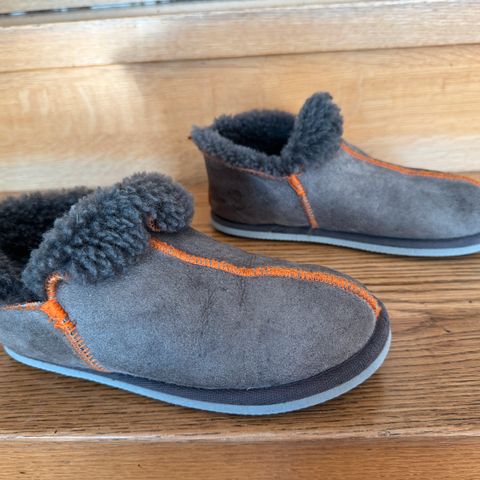 Pent og lite brukt Shepherds saueskinn tøfler str.33. Veldig gode og varme. Sitter ekstra godt på foten med "båndet" i saueskinn som går bak hælen. Koster kr599 nye.