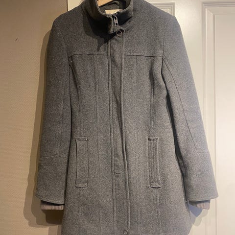 A never-worn wool coat in a neutral gray color. Kenneth Cole, size 4 or XS.