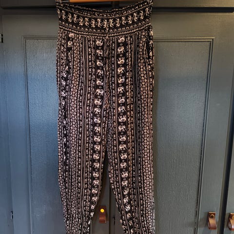 Buksen er i glatt stoff. Brukt 2 ganger.