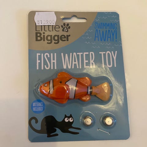 Kong katteleke med lys selges. Har vært på gulvet i noen minutter før vi pakket den tilbake i pakningen.