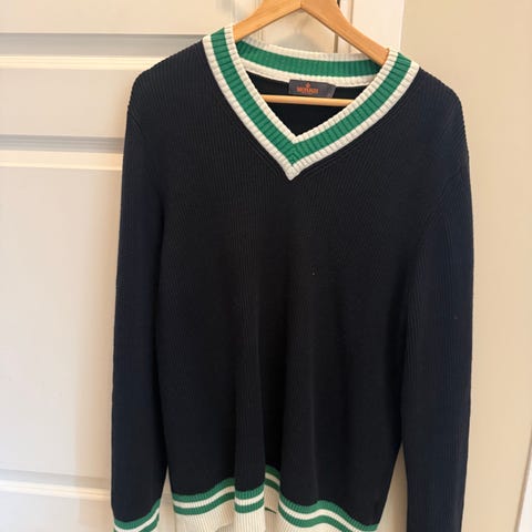 Fargen er mørk blå med grønne kanter. Passer for deg som liker kvalitet med et hint av norsk designtradisjon 🇳🇴✨