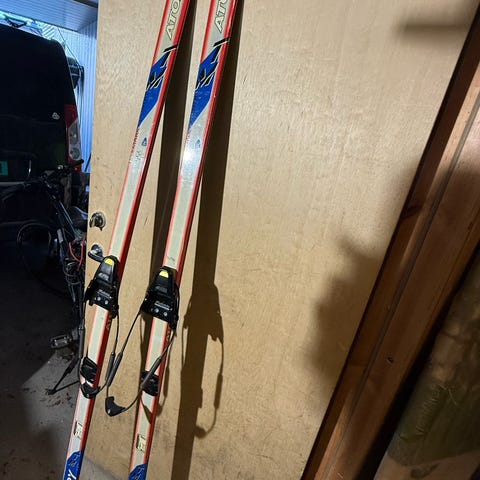 Atomic carv 6-18 (102 - 64 - 89,5) telemarkski med Rottefella chili bindinger, distanse plate for å kunne kante skikkelig i bakken. Skistoppere i metall følger også med. Noen riper og merker, men her er det masse skiglede igjen i bakken med disse ekstremt lekne skia.