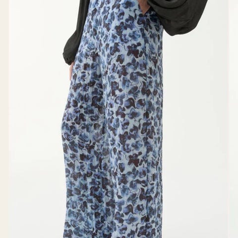 Pent brukte bukser med sleng i jacquard (buksen har noe glitter i seg) jeg er 163, så buksen er ikke cropped på meg, men vanlig lengde
