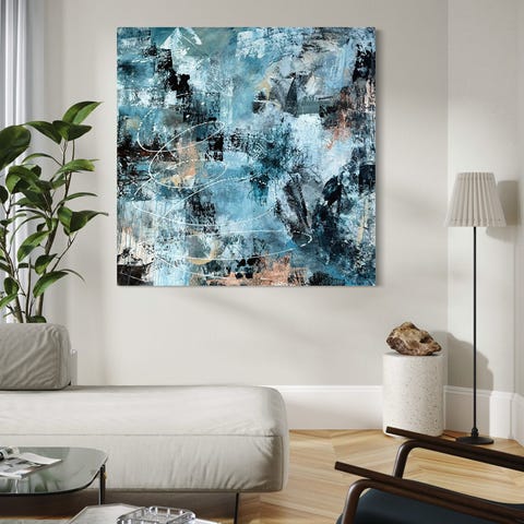 Maleri i herlige blåtoner selges. Inspirert av havet. Maleriet er 100 x 100 cm og er malt på dyp blindramme (4 cm). Kantene er malt sorte og innramming vil ikke være nødvendig. Maleriet er malt lag på lag, noe som skaper dybde og liv i maleriet.