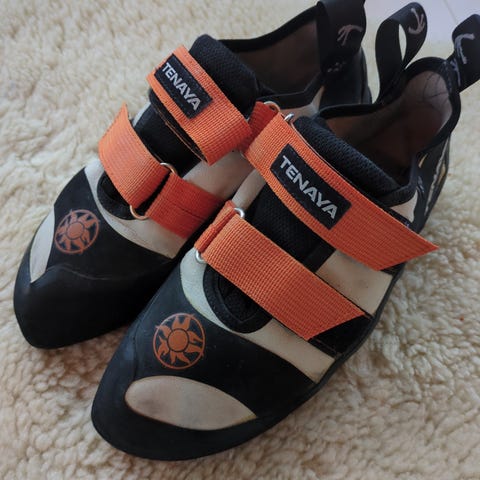 Brukt 2 ganger, men de er for små for meg. Størrelse 37. Jeg bruker 37 til vanlig men disse ble for trange, selv om klatresko skal være trange.