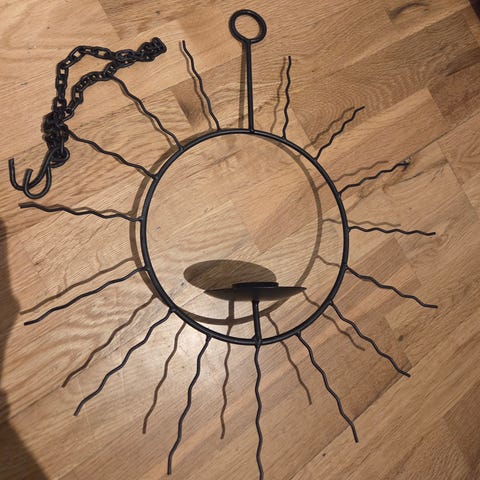 Lysestake i metall med rund, åpen form og grenlignende design. Staken står på små ben og har flere holdere til telys eller små kubbelys. Passer som borddekorasjon eller som stemningslys i stue, gang eller andre oppholdsrom. Nøytral metallfarge som gjør at den kan kombineres med ulik innredningsstil.