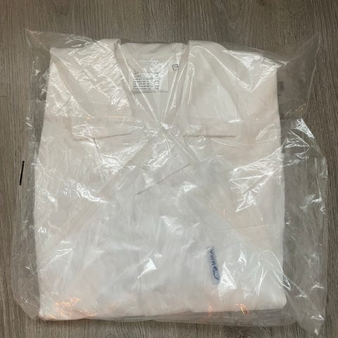 Labfrakk fra VWR godkjent til laboratoriebruk. 100% bomull. str S/M dame. Pent brukt med noen bruksmerker, blant annet et lite hull (se bilde) og navn skrevet på brystlommen. Ellers hel og pen.