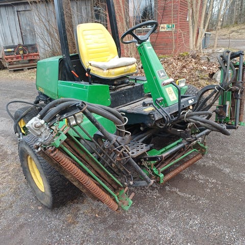 High end gressklipper til salgs. Brukt på golfbane og i de senere årene på et småbruk. Grei stand. Bremser er veldig dårlig, bør sees over hvis den kjører i bratt terreng (har ikke vært et problem hos meg da man kan stoppe med fram og tilbake pedalene). Setetrekket er nå trukket om i John Deere gult (selvgjort, men «helt»).