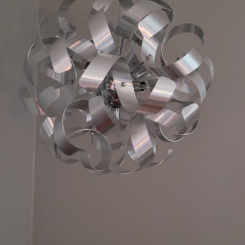 Etter at vi har flyttet så har vi ikke plass til denne flotte krystall lampen.Det var spotter i taket her vi flyttet til.Denne er kjøpt på christiania glass magasin i 2016 da kostet den 10.000 gir et utrolig fint lys og gjør til at stuen får en X-faktor