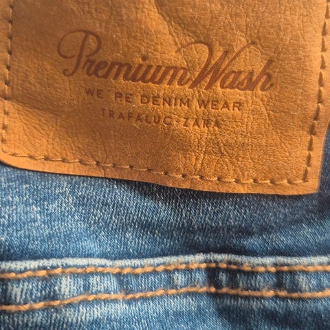 Ny med lapper. Zara mørk blå skinny jeans i super stretcy denim stoff. Str 38. Rå kanter rundt anklene for en kul slitt look.