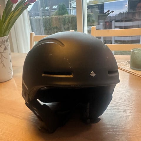 Selger slalomhjelmen min fra Smith. Hjelmen er pent brukt og er i størrelse medium. Hjelmen har ventilasjonsjakter på øversiden og har en bøyle for å holde skibrillene på plass.