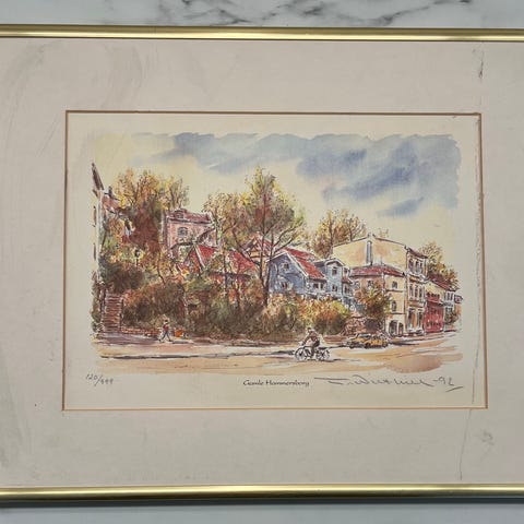 Litografi av akvarell av May-Britt Kjeserud fra 1994.