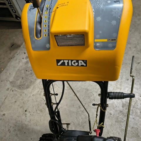 Hendig og god snøfreser fra Stiga kjøpt rundt 2010. Er i god stand. Olje byttet hvert år og brukt med E5 bensing. Ikke brukt på grus.
