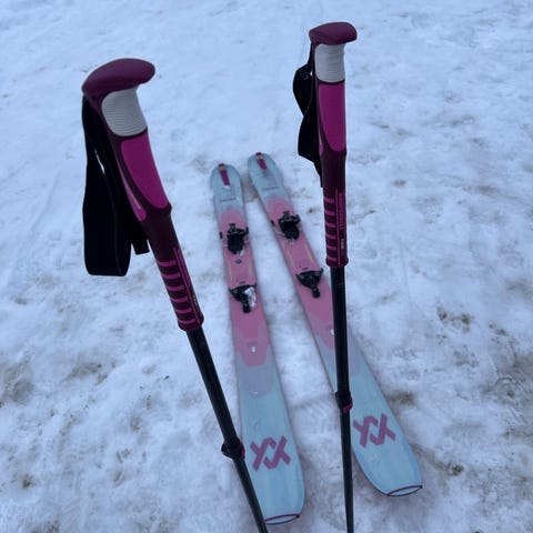 - A pair of ski touring skis (149 cm) with skins.