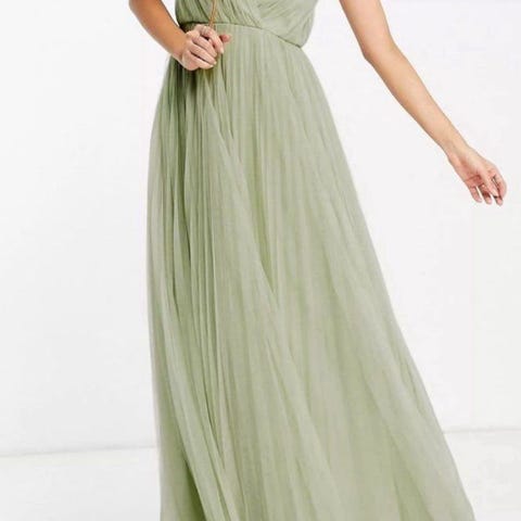 Gammelrosa kjole fra ASOS i str. 36. Brukt bare én gang i et bryllup (se første bilde). Beveger seg fint og veldig behagelig stoff å ha på.