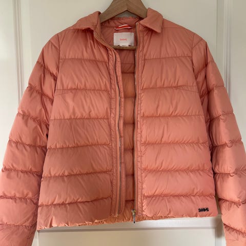 Swims dun jakken . Fargen er en blanding av rosa og oransj, så lignende aprikos. Ubrukt( fikk som gaven) ikke vasket