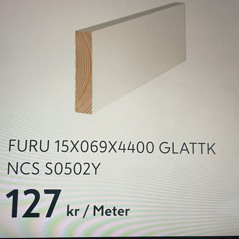 2 stykk glattkantlist 15x70 hvit