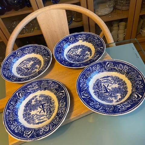 Suppe eller frokost grøt tallerken med blomst / vintage Arabia med imperfections