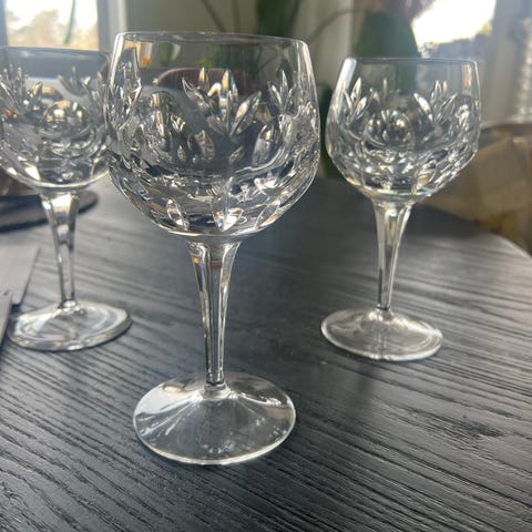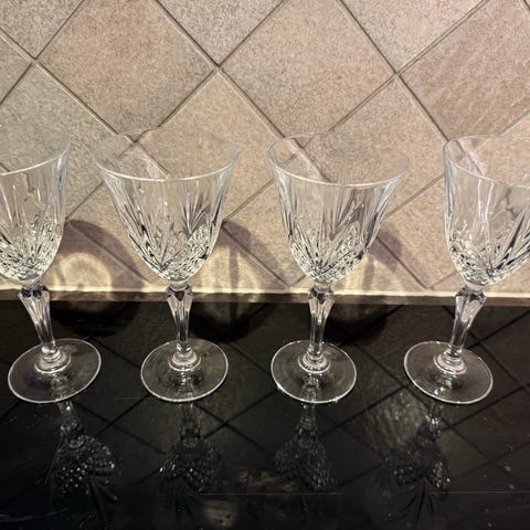 Da jeg har flere glass enn jeg trenger, selges nå 4 stk. De har ikke vært brukt, men da de har vært pakket vekk som reserve glass har jeg tatt av etikettene og vasket dem for hånd, før salg.