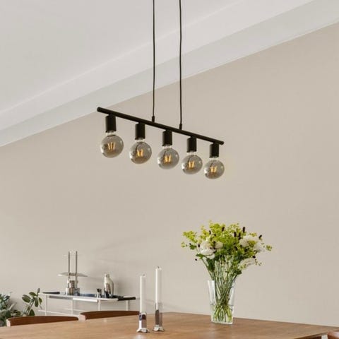 Pen taklampe med lampeskjerm som slipper noe av lyset gjennom slik at den sprer lyset fint i rommet. 70 cm i diameter, ca 33 cm høy. Når det er hengt om i taket er nedre del av lampen ca 1 meter fra taket. Det er ca 10 cm mer kabel i opphenget.