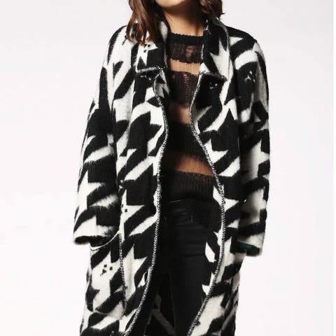 Nytt kåpe ull blandings stoff. 60 prosent ull 40 prosent polyester . Str 36. Rett i fasongen stikk lommer. Lengde 99 cm.. Grå og mørke blå striper.