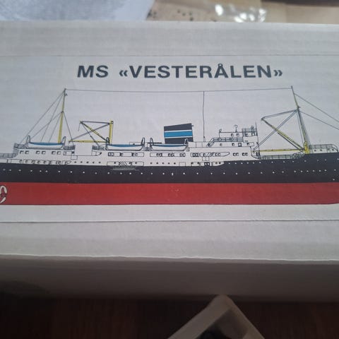 Moddel i tre med innlagt lys å skorstein kr700 + Porto.