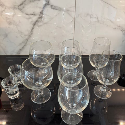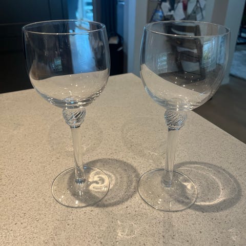 Settet inneholder flere typer glass, inkludert vinglass og vannglass. Designet er kjent for sin unike tekstur og elegante blå detaljer, ideelt for både hverdagsbruk og spesielle anledninger.