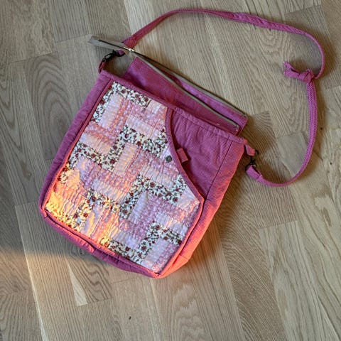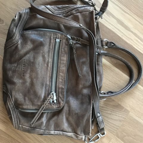 Søt liten skulderveske plass til mobil, nøkler , småting . Laget av kork. Aldri vært i bruk . 3 små rom . 18 cm x 12x 5 cm