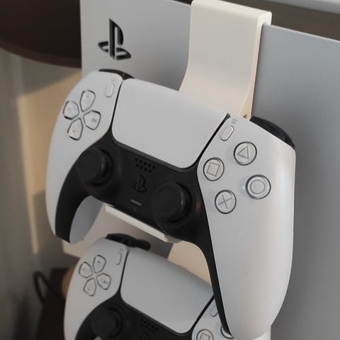Selger praktiske veggoppheng for PS5- og PS4-kontrollere samt hodetelefoner. Perfekt for å holde orden i gamingområdet ditt og spare plass.