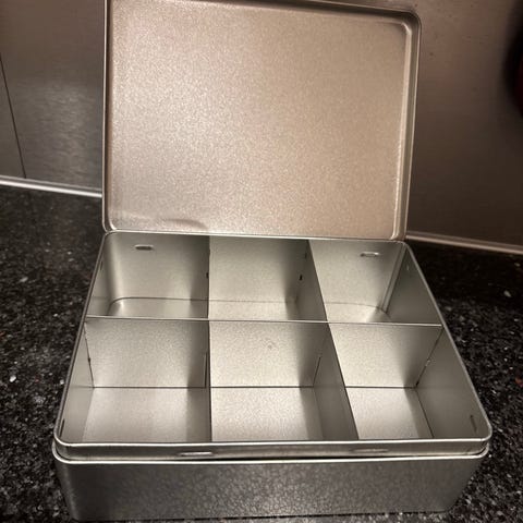 Avfallssorteringsbokser brukt til glass/metall, papp/papir, tomgods og plast på kjøkken. Kan stables i høyden, eller plasseres i et skap. Kjekke å ta med hele dunken ut i søppeldunk da alle har håndtak. Alle har "luke" i front, til å kaste inn i. Ikke vasket på bildet, kan derfor se mer slitt ut enn de er.