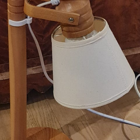 Stor bordlampe fra Rjukanlys AS Design. For 3 pærer. 73-80 cm. høy. Skjerm 43 cm. i diameter.