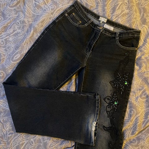Svarte jeans m/pynt og stretch str XL
