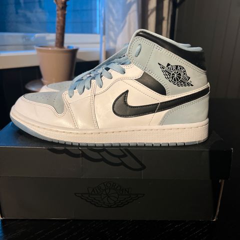 Pent brukte og klassiske Nike Air Jordan 1 MID i fargen light smoke grey/white/anthracitegrey størrelse 42,5 selges. Noen bruksmerker og en lisse som er spleiset. Muligheter for