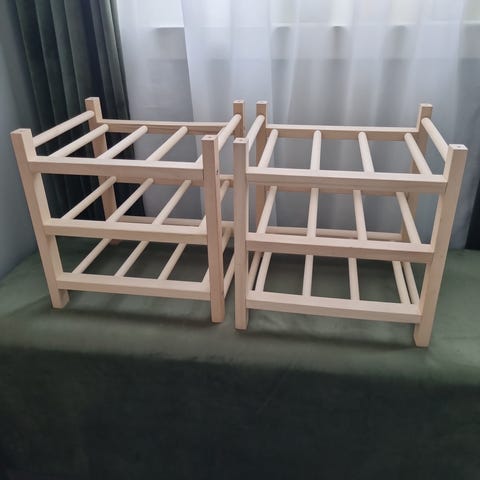 Bondemøbel/Vegg hylle for vin. 8 åpninger for vin flasker, er også en hylle f.eks. for glass ,mulig også å henge 8 stettglass fra toppen. Kr. 700,-