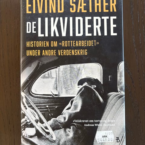 De likviderte - historien om "rottearbeidet" under andre verdenskrig AV Eivind Sæther. Under andre verdenskrig ble mer enn 80 sivile nordmenn likvidert av motstandsbevegelsen. Mange av dem var politimenn, noen var agenter for tyskerne, andre sjåfører, vaskehjelper eller kontoransatte. De ble drept på åpen gate, på trikken, på kontoret eller hjemme i sine egne stuer. Noen visste at de var i livsfare, andre ante ikke hva som ventet dem. Hvem var de unge mennene som ble satt til å utføre disse drapene, «det mest krevende arbeidet»? Hvem var ofrene, de som motstandsbevegelsen kalte «rotter»? Etter krigen sørget mektige menn i det offisielle Norge for at navnene på de som hadde utført likvidasjonene aldri ble kjent. I stedet valgte vi å fortelle en annen historie om krigen. «De likviderte» forteller endelig hele historien om «rottearbeidet», om de som valgte feil side og om agentene som måtte påta seg en av krigens tøffeste oppgaver. 2023. Som ny.