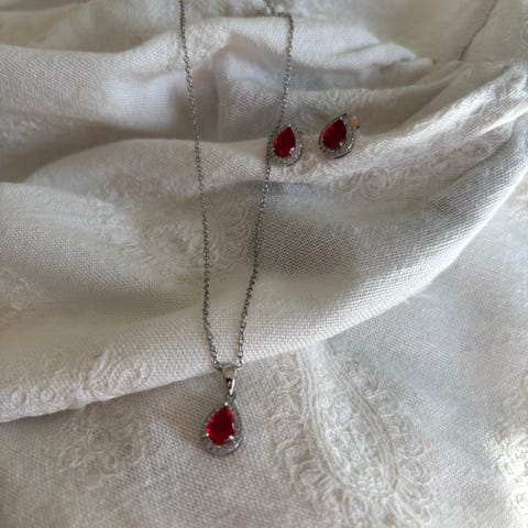 SMYKKER SETT MED ROSA SAFIR MED DIAMANTER I HVIT GULL