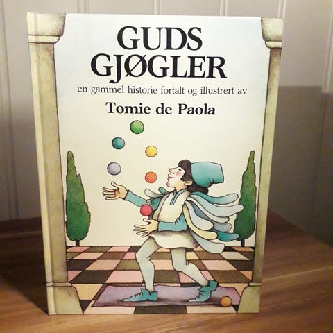 "Guds Gjøgler" fortalt og illustrert av Tomie de Paola. Utgitt av den norske Bokklubben i 1981. Til norsk ved Gerd Grønvold Saue. Originaltittel: The Clown of God.