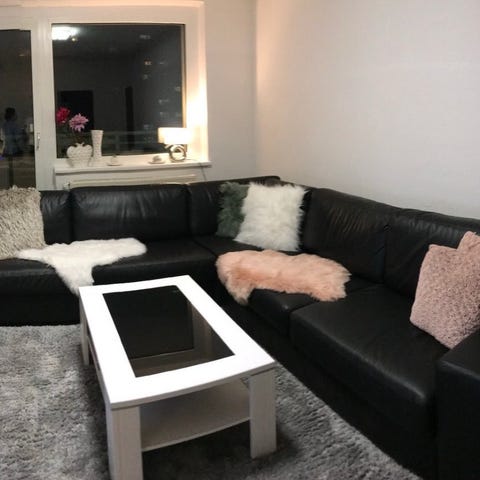 Svart tv skinnsofa