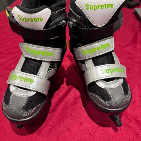 Frost skøyter med justering i str 32 til 35 selges for kr 200.Skøytene er pent brukt, men det har skallet av noe lakk på bindingene. Hentes på Hisøy eller sendes mot at kjøper betaler frakt.