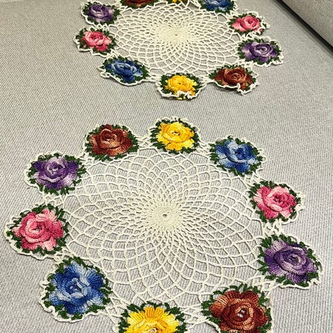 Fin heklet brikke i rosa.Jeg kan sende med Post Nord porto blir 69kr. Jeg har flere annonser her inne kan samsende om du finner mere. 🙂