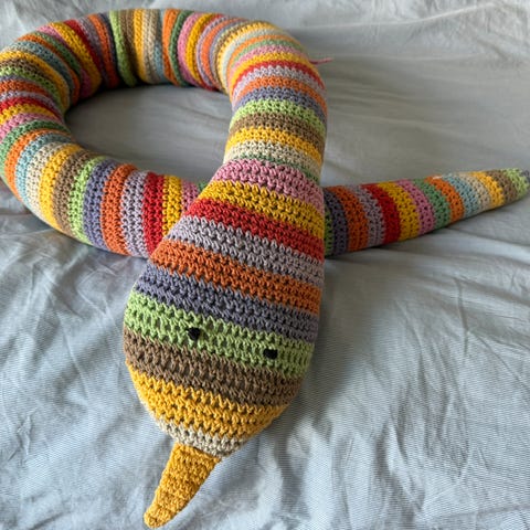 Utrolig morsom, lang (ca. 180 cm ) dekorativ slange. Ren og «ubrukt», kun ligget til pynt på en sofarygg.