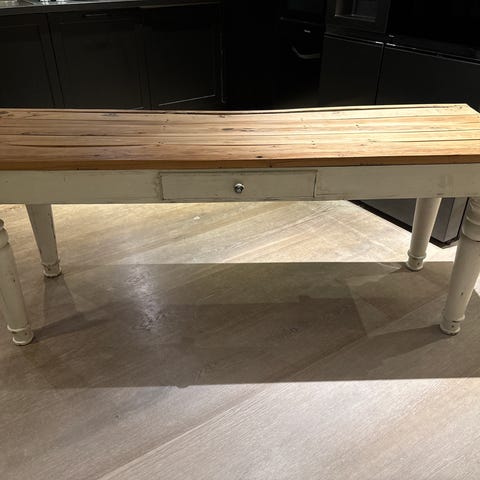 Skrivebord fra Home and cottage i resirkulert tre, mangler skruene for å feste platen i bena, men bordet kan festes med små skruer 😊