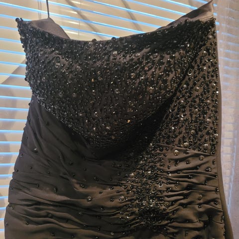 Lang svart festkjole til salgs