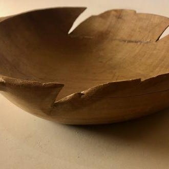 Trebolle trolig fra 17-1800 tallet. Original maling som er slitt. Trolig fra en norsk gård, men vet ikke dette. Bollen har en liten sprekk, men er ellers tett. Ca. mål: Diam. 190 mm. Høyde :80 mm.