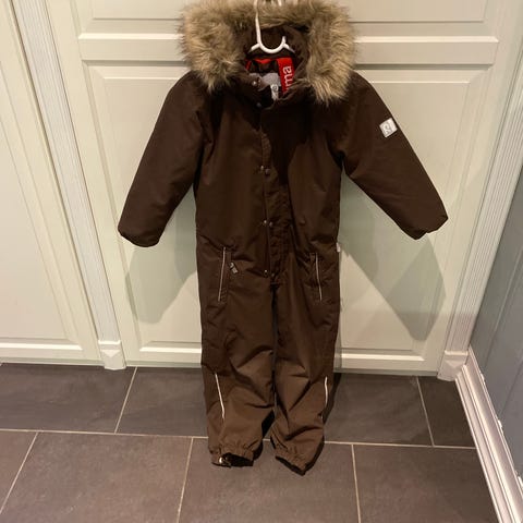 Brukt vinterdress, men mye bruk igjen. Mangler dessverre hetten. Dressen er fin, antydning til slitasje på knær og rumpe - men ingen hull. Ganske sikker på at forlengelsen nederst på beina er klippet opp, men har ikke noe å si. Mangler fotstrikker, men knapper til å feste nye sitter på.