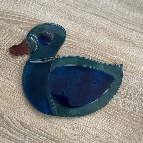 Ca. 22 x 8.5 cm. Noen skripler på selve glassene som den er limt på eller flott.