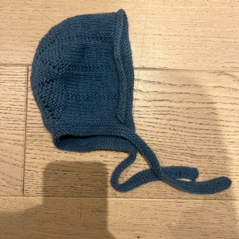 Strikket i babyull (merino). Mellomblå farge. Nydelig garnkvalitet.