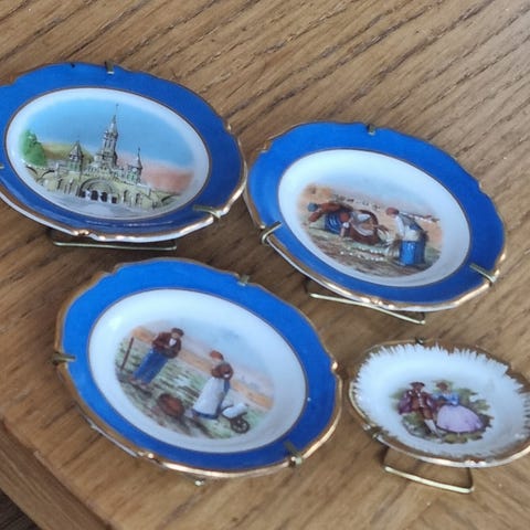 Antall 8 stykk diameter 16,5 cm. Alle er feilfrie, ikke hakk eller skår. Litt slitasje på gullkant på en asjett. Samlet pris: 1450,- kr